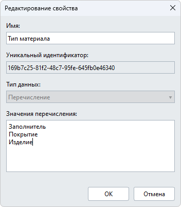Для определения типа материалов создадим свойство типа Перечисление: